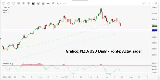 A conferma di quanto diciamo, osserviamo la dinamica del movimento delle ultime 12 ore di NzdUsd che è sceso di 100 pips da ieri sera, in ragione della decisione del Governo di implementare nuove misure per calmierare i prezzi del mercato immobiliare. La manovra viene giudicata dal mercato come un tentativo di mantenere bassa l’inflazione e ciò sembra avere implicazioni accomodanti anche per una eventuale prossima decisione della Rbnz che, potrebbe aspettare prima di alzare il costo del denaro, specie se la misura avrà l’effetto sperato. NzdUsd, dicevamo, è sceso da 0.7180 a 0.7080, rompendo il supporto precedente a 0.7105 e indirizzandosi verso il supporto psicologico di 0.7000, livello chiave da osservare. Ciò ha generato, di conseguenza, la discesa dei cross NzdCad e la salita di AudNzd, giunto in prossimità di 1.0875. Qualche settimana fa tali notizie non avrebbero provocato i movimenti di oggi, perché AudUsd avrebbe seguito parallelamente la discesa di NzdUsd, in ragione di un mercato quasi perfettamente dollaro centrico. Oggi è diverso perché, come abbiamo ricordato nelle ultime settimane, è in atto una diversificazione di portafoglio valutaria che influenza questo tipo di correlazione, concentrandosi proprio sui dati macro paese per paese, che sono diversi, e hanno condizioni congiunturali differenti. E questo pare estremamente intrigante perché consente un trading tecnico che è sempre stata una delle migliori caratteristiche del mercato valutario.