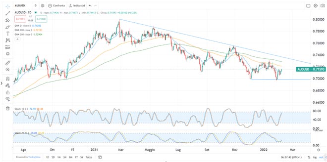 Oggi i dati più importanti in uscita sono la bilancia commerciale tedesca, attesa a un surplus di circa 10 miliardi di Euro con riferimento al mese di Dicembre 2021, e la produzione industriale italiana, attesa a +5% su base annua. Ci aspettiamo ancora giornate di consolidamento da qui a fine settimana, senza grandi movimenti direzionali.
