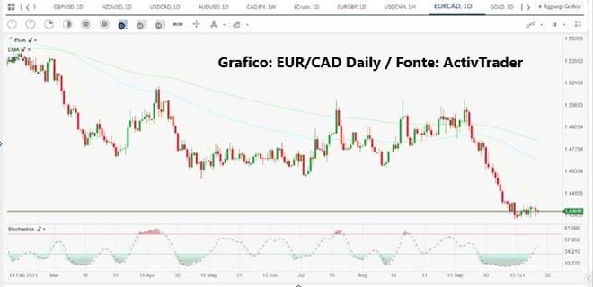 Sul fronte dati oggi sarà una giornata poco rilevante, con i soli dati sul mercato immobiliare Usa a poter provare a muovere i prezzi. Domani invece comincia la Bank of Canada, attesa ad un nulla di fatto sul fronte tassi, ma forse a qualche dichiarazione hawkish rispetto al tapering. Intanto il dollaro canadese, nonostante un petrolio che ieri aveva toccato gli 85 dollari al barile, non ha guadagnato terreno rispetto alla divisa Usa e in serata si pensava che UsdCad rompesse 1.2400 al rialzo, anche se poi ha ripiegato tornato a ridosso di 1.2370. In ogni caso abbiamo la sensazione che il Cad possa recedere qualche punto da qui a fine anno, in relazione ad una possibile correzione del petrolio, giunto su livelli non lontani da interventi atti a calmierarne le price action.