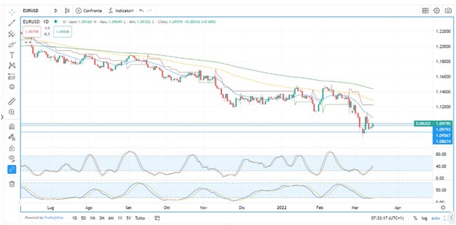 Vedremo se l’analisi tecnica conforterà questa visione delle prossime price actions, ma certamente a livello macro, potremmo assistere a questo movimento se la guerra cessasse e si cominciasse a parlare di ripresa economica e ritorno all’appetito al rischio degli investitori.