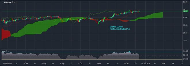 I prezzi, pur faticando a superare il livello di resistenza a $49, sembrano decisi a creare una fase di trading range piuttosto che un sell off. In ogni caso al ribasso, monitoriamo il supporto a $44 che se infranto potrebbe modificare l'attuale tendenza ancora costruttiva.