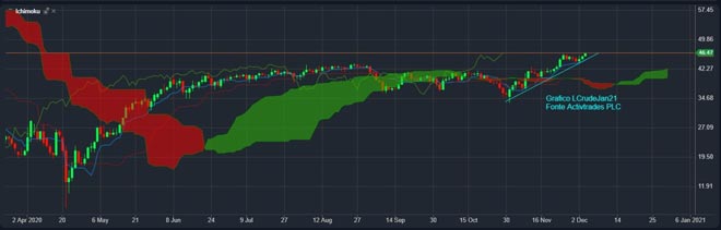 Il mercato ha reagito positivamente alla notizia dell'accordo, con i prezzi che hanno rotto al rialzo il livello di resistenza a $46. Al momento il trend rialzista rimane intatto finché le quotazioni restano sopra il valore di supporto a $43.50 con possibili target verso $47.50.