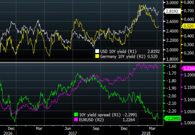 Iniziamo dai fondamentali. Abbiamo assistito a un forte aumento dei rendimenti delle obbligazioni statunitensi e una corrispondente diffusione dei bund tedeschi, ma non ha aiutato il dollaro o non ha impedito l'ascesa dell'EUR/USD.