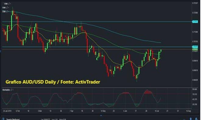 Tutto ciò è bastato per dare ulteriore fiato al dollaro australiano (e neozelandese), le principali vittime di questa prima fase dell’anno, con un recupero che dai minimi di inizio gennaio (flashcrash) ripetuti nel mese di giugno, ormai è di circa il 3% per Aussie. A questo punto tecnicamente, una violazione dell’area di 0.7050, secondo noi potrebbe aprire la strada al retest di 0.7210 e al cambiamento del trend di medio termine, che è ribassista dal gennaio del 2018, praticamente un anno e mezzo. Anche osservando il grafico su base settimanale, si intravede questo cambiamento, che però sarà inversione di trend solo nel caso di rottura di 0.7400, che è ancora ben lontano dall’essere raggiunto. Ma la costruzione di minimi crescenti, anche su base settimanale, pare di buon auspicio per assistere ad un cambiamento del movimento fin qui osservato.