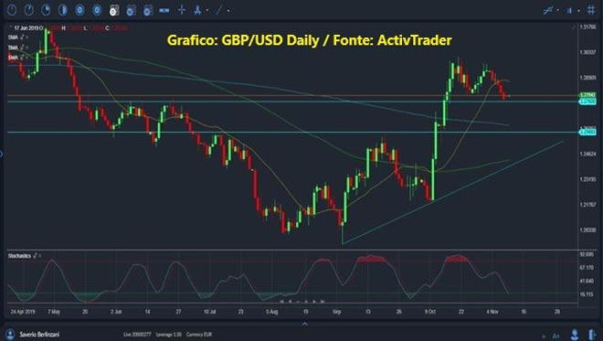 Oggi, ricomincia un’altra settimana, caratterizzata dalla festività Usa di oggi relativa al giorno dei veterani, il Veteran’s day dedicato a tutti i reduci di guerra. Con gli Usa chiusi è probabile che il mercato sarà più spento del solito anche se durante la sessione europea, in particolar modo alle 10.30, verranno pubblicati i dati inglesi sul Pil del terzo trimestre annualizzato, attesi a + 1.1% dal +1.3% del dato precedente, mentre il dato rispetto al trimestre precedente è atteso a +0.4%. Si aspetta poi anche la pubblicazione della produzione industriale del mese di settembre, le cui previsioni sono in calo dell’1.6% mentre su base annua il consensus è a -1.2%. Anche la produzione manifatturiera è prevista in ribasso dell’1.69% su base annua. Infine la bilancia commerciale con un consensus a settembre di -2 miliardi di sterline. Tutto ciò potrebbe generare un poco di volatilità sulla valuta britannica che, contro dollaro, nelle ultime sedute è scivolata lentamente sotto quota 1.2800, tenendo comunque egregiamente rispetto al recupero visto nel mese di ottobre. Per ora i supporti sono da ricercare in quest’area di 1.2765-75 e successivamente, in caso di violazione al ribasso, nell’area compresa tra 1.2680 e 1.2700. Sugli altri fronti non c’è molto da segnalare, con le oceaniche tornate sotto pressione in relazione alle difficoltà che Usa e Cina trovano per firmare. Aud in pressione con l’area di 0.6810 15 a fare da supporto chiave. NzdUsd tiene meglio anche se per riaccelerare al rialzo dovrebbe rompere l’area di 0.6450-60 che all’inizio di novembre ha respinto il recupero. Scivola AudNzd, tornato sotto quota 1.0800 e supporto nelle vicinanze a 1.0770-75 area. Poco da segnalare anche su UsdJpy, tornato sotto quota 109.00 per il leggero aumento del risk off, e EurUsd, che resta in bilico appena sopra 1.1000, sempre fragile in ragion del differenziale di tasso. Anche i cross cincischiano con EurJpy a ridosso del supporto di 120.00 ed EurGbp non lontano dai livelli di 0.85-80-90 che fanno da punto di eventuale ripartenza.