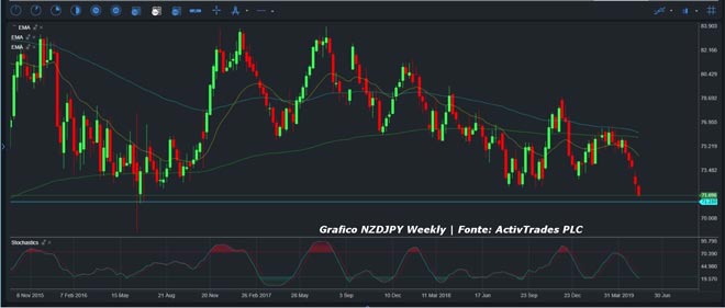 Nel caso in questione UsdJpy, una delle due leg (gambe) che formano i cross AudJpy e NzdJpy, tende a scendere perché lo Jpy assume la caratteristica di valuta rifugio rispetto al dollaro, mentre AudUsd e NzdUsd, che dovrebbero salire per il fatto che i tassi Usa sono più alti (anche se di poco) di quelli dei due paesi oceanici, scendono per effetto della discesa dei cross AudJpy e NzdJpy in cui la divisa giapponese fa la parte del leone. Queste caratteristiche del mercato, che sono univoche, rendono il mercato unidirezionale nei casi di risk off, in quanto l’unica determinante è quella di acquistare valute rifugio, contro qualsiasi altra valuta. La conseguenza è che la maggior parte dei grafici diventano molto simili nella loro configurazione. AudJpy, NzdJpy, EurJpy, GbpJpy, scendono trascinando con loro anche i cambi originali AudUsd, NzdUsd, EurUsd, GbpUsd, anche se l’entità della discesa dei cambi originali appare demoltiplicata e ridotta rispetto ai suoi cross contro Jpy. Questo il quadro tecnico, che si accompagna ovviamente a incertezze macro che si evidenziano nei dati, che stanno mostrando un rallentamento generale a livello globale.