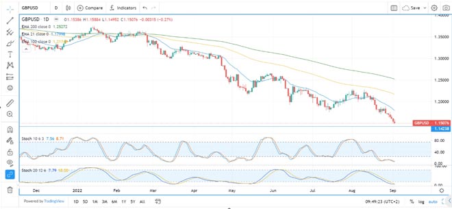 Sull’Euro, poco da segnalare, nel senso che siamo tornati sotto parità anche se navighiamo nell’intorno di quest’area, senza grandi scossoni. Si attende la Bce giovedì prossimo, attesa ad un rialzo trai 50 e i 75 punti base. E’ chiaro che la moneta unica sta tenendo solo per il fatto che le ultime dichiarazioni all’interno del board della banca centrale europea, hanno fatto riferimento ad un rialzo dei tassi dello 0.75% e non dello 0.50%, ma se dovesse esserci un rialzo inferiore, l’Euro potrebbe sprofondare nuovamente e puntare decisamente ai target di medio termine a 0.9590 0.9600.