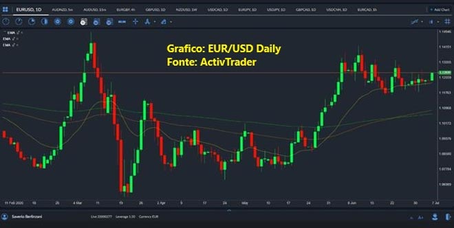 Nelle ultime ore, sul mercato dei cambi, è apparsa una certa forza dell’euro, che ha alimentato il ribasso del dollaro contro le principali valute concorrenti, in una fase di risk on che sembra essere ancora predominante. L’EurUsd infatti ha consolidato in area 1.1250 per qualche giorno e poi ieri ha provato ad attaccare l’area di 1.1350, per ora rifiutata. Il prezzo si trova a ridosso di queste resistenze, con la moneta unica, per ora incapace di violarle, ma non è detto che non ci riprovi nelle prossime ore e l’eventuale breakout potrebbe anche portare i prezzi sopra 1.1400, con l’area 1.1425-35 come possibile obiettivo. Le ragioni di questa forza di euro o debolezza di dollaro potrebbero paradossalmente essere legate ai dati Usa che cominciano a migliorare, come l’Ism non manifatturiero del mese di giugno, uscito a 66 contro 49 del consensus o anche i Pmi dei servizi e composite che sono tornati non lontano dai 50 punti, il confine tra espansione e rallentamento economico. Certo, sono sondaggi presso i direttori di acquisto delle grandi aziende, quindi non rispettano una reale condizione della congiuntura, ma solo una opinione pur importante dei responsabili di queste grandi aziende, e hanno quindi una loro significativa valenza comunque.