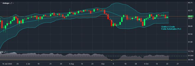 La Price Action fotografa una situazione di sostanziale trading range dal mese di giugno attorno al valore mediano di $40 con livello di resistenza a $43 mentre il supporto a $36. Difficile pensare in questa situazione ad un ritorno verso i valori di $55/$60 per barile, fino a quanto non sarà disponibile un vaccino, che ora sembra la chiave di lettura per tutto il sistema finanziario.