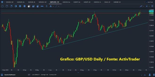 Ieri sera, in apertura in Asia, la sterlina era in discesa in ragione delle aspettative negative su un accordo che pareva ormai compromesso. Successivamente c’è stato un tentativo di recupero, quando è uscita una voce che parlava di progressi nella questione della pesca, che è poi quella più importante in questo momento e sulla quale lo scontro si è fatto più aspro tra ambo le parti. Poi una nota ufficiale ha smentito tale accordo e siamo nuovamente sotto pressione. La verità è che siamo ancora in alto mare, e anche se i colloqui vanno avanti e un accordo potrebbe essere trovato in extremis, siamo destinati a vivere ancora ore e giornate convulse, sulla moneta britannica.