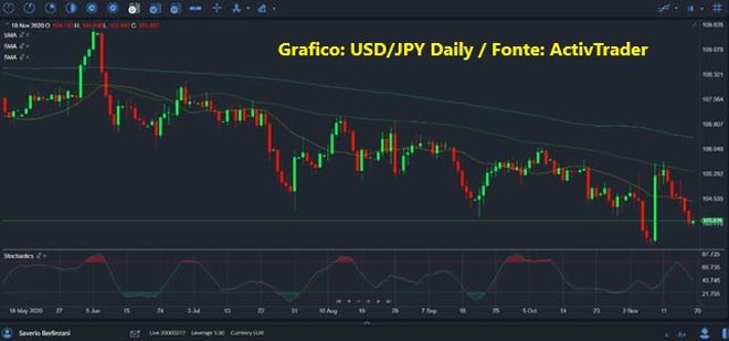 L’EurUsd ha oscillato nelle ultime due sedute tra 1.1810 e 1.1890 mentre il UsdJpy è scivolato pip dopo pip fino a 103.65, unico movimento di rilievo dato che nelle ultime tre sessioni ha perso circa 150 pips, trascinato da una leggera tendenza ribassista sul biglietto verde generata, come richiamato anche ieri, dalle incertezze sul sistema Usa, la mancanza di un vincitore ufficiale delle elezioni, la pandemia e il mancato accordo sugli stimoli fiscali. Gli unici movimenti comunque degni di nota, stanno avvenendo, come detto, durante la sessione asiatica che comunque ha visto una discesa di Cable da 1.3280 a 1.3220 dopo che dall’Europa sono uscite in tarda serata, notizie relative ad un piano di sostegno alle aziende messo in piedi da Paesi Bassi, Francia e Belgio, di sostegno eventuale alle comunità di pescatori che saranno colpite da un eventuale Brexit senza accordo.