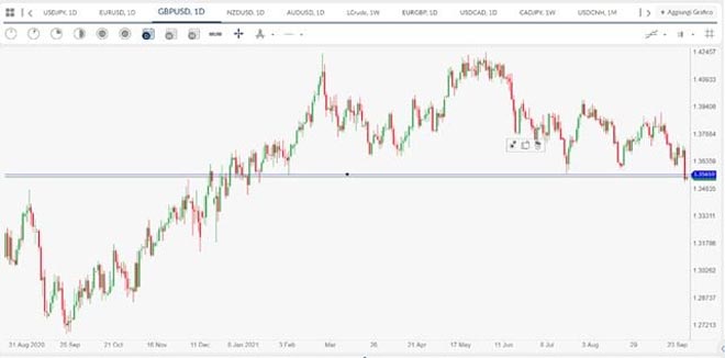 In ogni caso, quel che stiamo notando è una forza estrema di dollaro contro tutto e tutti, anche e specie nei confronti dello Jpy che in una condizione di paura come quella che stiamo vivendo, (l’indice Vix è salito due giorni fa di quasi il 24% per poi correggere ieri solo di un 3%) dovrebbe invece scendere. A meno che non si consideri il dollaro maggiormente valuta rifugio dello Jpy, come è già accaduto durante la crisi della pandemia a fine marzo 2020. Detto ciò viviamo una condizione comunque di correlazione classica (il biglietto verde si muove al rialzo contro le altre valute) unita però ad una condizione di correlazione specifica su alcune valute, sterlina in testa che ha fatto 300 pips in due giorni come non si vedeva da tempo. La difficoltà che la Gran Bretagna sta incontrando nel post Brexit sembrano essere la ragione principale di questa discesa impulsiva della valuta britannica che ieri ha trovato apparentemente una base in area 1.3400, correggendo poi qualcosa. Ma non dimentichiamo che in questo scenario, gli Usa rischiano di non pagare stipendi pubblici già il 18 ottobre, altra ragione che ha causato queste paure sul mercato, nonostante il fatto che sono già 4 anni che in autunno il Congresso deve votare lo sforamento del debito per impedire lo shutdown della pubblica amministrazione.