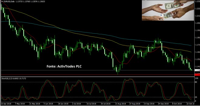 Quanto durerà? Considerando che la Fed alzerà ancora il costo del denaro a breve, nel mese di novembre, e che dice di voler persistere nell’azione di rialzo anche nel 2019, per ora la pressione resta alta e le chance di ulteriore salita sono evidenziate dal grafico del Dollar Index che si avvicina a importanti resistenze, ma sembra avere ancora spazio per salire ulteriormente.