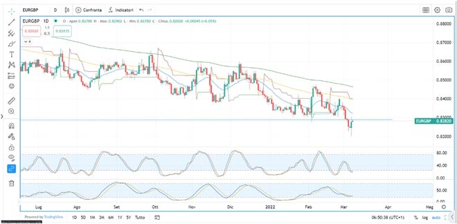 Sul fronte dati oggi avremo la pubblicazione della terza stima del Pil del quarto trimestre 2021 di Eurozona, atteso a +3.9% su base annua e +2.2% su base trimestrale. Nel pomeriggio bilancia commerciale Canada e Usa, attese la prima invariata vicino allo zero e la seconda in deciso peggioramento alla impressionante cifra di 87 miliardi di dollari nel solo mese di gennaio, rispetto ad un dato precedente che si era fermato a -80.7 miliardi di dollari.