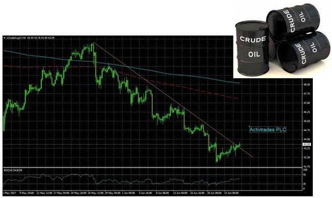 La tecnica ci insegna che alla rottura della trend line al ribasso, potrebbe verificarsi una fase di recupero delle quotazioni verso l’area situata a $44,20. Invece nel caso di ulteriore discesa i target si attesterebbero vicino agli ultimi minimi e poi verso i $41,50. Quindi attendiamo lo sviluppo della price action.