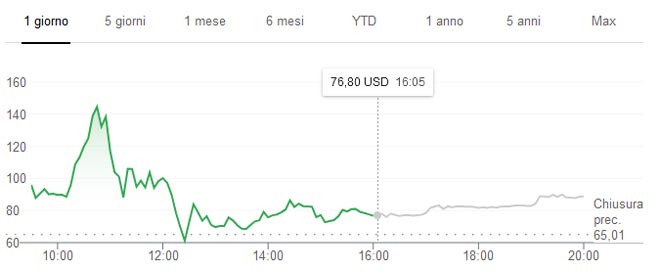 Questo il grafico delle azioni GameStop nella giornata di contrattazioni di ieri 25/01