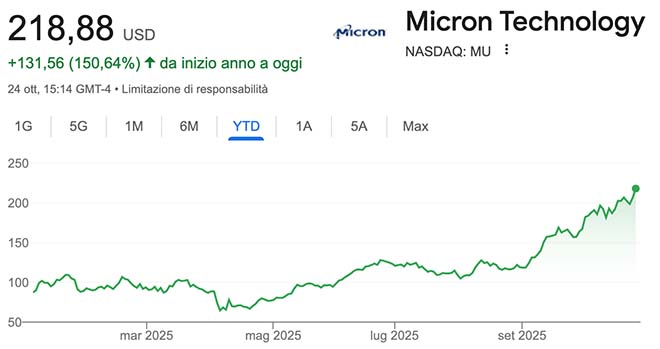 Con un balzo superiore al 150% da gennaio 2025, Micron si è imposta come protagonista assoluta di un rally senza precedenti.