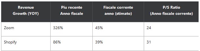 Entrambe le società dovranno affrontare confronti difficili in un mondo post-pandemia. Le persone potrebbero fare meno affidamento sugli strumenti di videoconferenza come Zoom quando tornano al lavoro e a scuola e meno aziende potrebbero aprire negozi online con Shopify. Di conseguenza, entrambe le società genereranno inevitabilmente una crescita più lenta quest'anno, ma le loro azioni sono ancora scambiate a rapporti prezzo / vendite elevati.