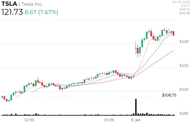Solo nell'ultima seduta di contrattazioni, il titolo TSLA ha chiuso con un rialzo di quasi 6 punti percentuale, spingendo la performance delle azioni Tesla ad oltre il 10% in pochi giorni dall'inizio del 2023.