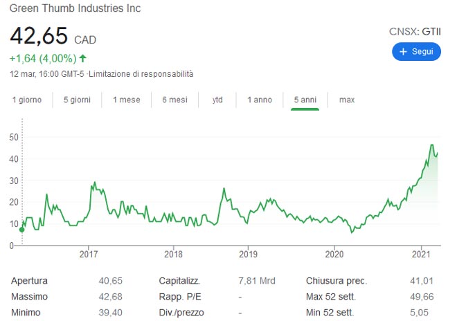 Vista la rapida crescita dell'azienda fino ad oggi, non c'è dubbio che la corsa delle azioni Green Thumb Industries non si fermerà presto, ed è certamente uno dei titoli da avere nel proprio portafoglio nel momento0 che ci sarà il vero boom delle azioni di marijuana.