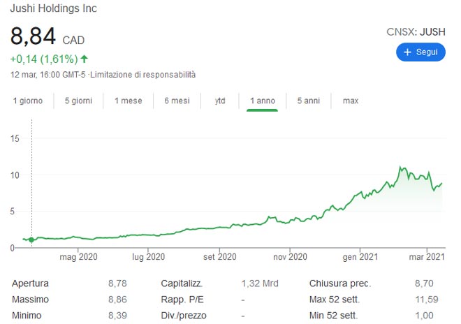 Jushi Holdings (CNSX: JUSH) è stato il più grande vincitore di questi tre titoli di cannabis negli Stati Uniti nel 2020 (Green Thumb Industries e Cresco Labs) con un impressionante guadagno del 325%. Finora quest'anno, le azioni Jushi Holdings sono aumentate solo del 6% circa, ma non si esclude la possibilità che l'azienda fornirà nuovamente un rendimento a tre cifre entro la fine del 2021.