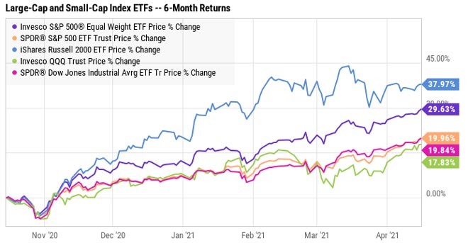 Tuttavia, circa sei mesi fa, le cose hanno iniziato a cambiare. La supremazia del Nasdaq e di altri indici a grande capitalizzazione ha iniziato a scemare. Le azioni più piccole hanno iniziato a guidare il movimento del mercato più ampio verso l'alto.