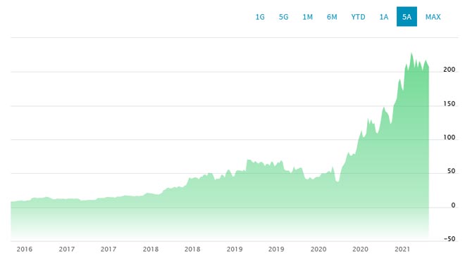 Guardando il grafico dell'andamento dei prezzi delle azioni Etsy è facile vedere l’enorme crescita degli ultimi anni.