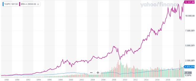 Le sue scelte di investimento fatte con Berkshire Hathaway (NYSE: BRK.A, NYSE: BRK.B) hanno generato un rendimento dal 1987 ad oggi dell'12.327,66% rispetto al rendimento dell'indice S&P 500 di appena 1.473,21%.