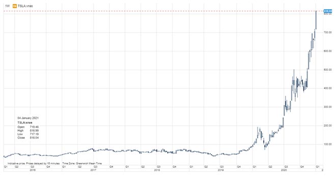 Nel caso di Tesla, il recente rialzo è stato alimentato da un sentimento speculativo nei confronti delle azioni green, dato che gli investitori stanno puntando sul fatto che la nuova amministrazione Biden giocherà a favore di queste società, attraverso sussidi e regolamentazioni.
