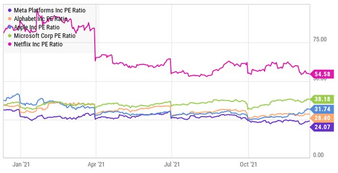 Eppure l'andamento del titolo Meta ha avuto una vita relativamente dura quest'anno, con un informatore che ha recentemente testimoniato davanti al Congresso sui presunti misfatti e/o negligenza di Meta nel vigilare sulla sua piattaforma globale. La controversia sembra aver pesato la valutazione di Meta, che scambia solo 24 volte i guadagni, il più basso dei titoli FAANG: