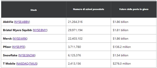 In totale, Berkshire Hathaway detiene posizioni in più di 40 azioni di borsa. Ecco le prime 10 azioni classificate in base al valore della puntata: