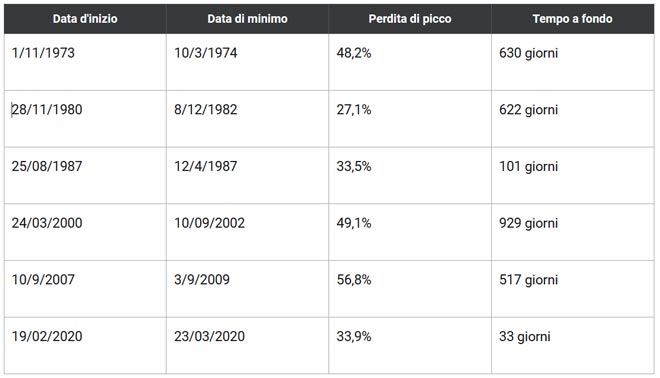 Chiaramente, i mercati ribassisti variano notevolmente in termini di durata e gravità. Ma i dati storici possono ancora fornire una visione significativa della situazione attuale.