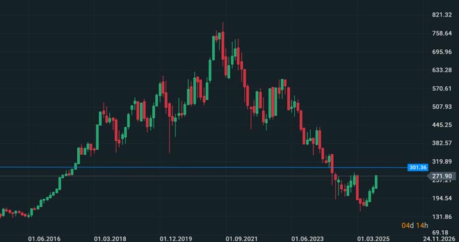 Sul fronte tecnico, però, Kering ha reagito con forza. Da inizio anno il titolo segna un +17,8%, mentre dai minimi di aprile il recupero supera l’80%. Nonostante ciò, la discesa dai massimi storici del 2021 resta pesante, con un calo complessivo dell’80%. La soglia dei 300 euro per azione rappresenta un livello chiave: superarlo potrebbe significare il consolidamento di un’inversione, ma la prudenza resta d’obbligo.