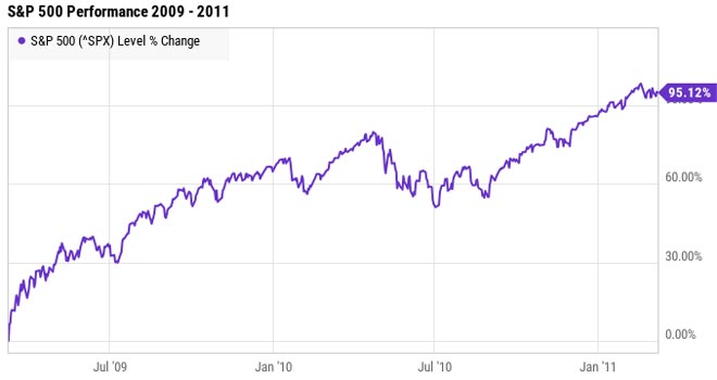 Ad esempio, durante la Grande Recessione, il mercato ha toccato il fondo nel marzo 2009. Nel solo anno successivo, tuttavia, l'indice S&P 500 ha registrato rendimenti di quasi il 70%. In due anni, è aumentato di oltre il 95%. Il modo migliore per guadagnare questi rendimenti è investire durante i mercati ribassisti.
