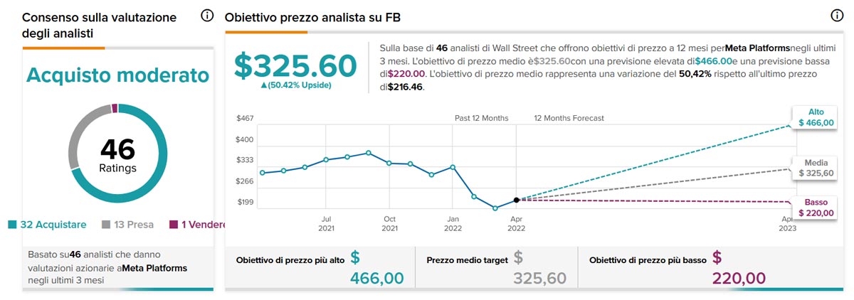 Gli analisti di Wall Street hanno il titolo come un “Acquisto moderato” con un solo analista che lo considera un “Vendi“. L'obiettivo di prezzo medio è di 325,60 dollari, che rappresenta un obbiettivo vicino al prezzo attuale del 47% al rialzo.