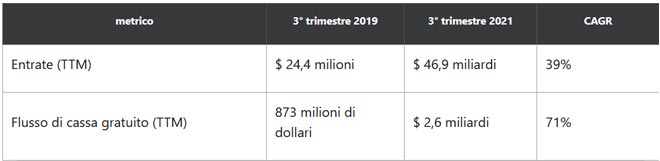Inoltre, fino a novembre 2021, Tesla deteneva una quota di mercato del 13,7% in termini di vendite di veicoli elettrici, battendo facilmente il secondo produttore di veicoli elettrici BYD, che ha conquistato una quota di mercato del 9%. Nel complesso, il miglioramento dell'efficienza dell'azienda e la sua posizione dominante si sono tradotti in risultati finanziari impressionanti sia in termini di profitti che di profitti.