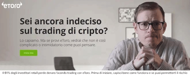 Se vuoi iniziare a investire in criptovalute ti consigliamo di farlo con un conto demo, che molti broker offrono gratuitamente, come eToro (vedi qui la recensione di eToro).