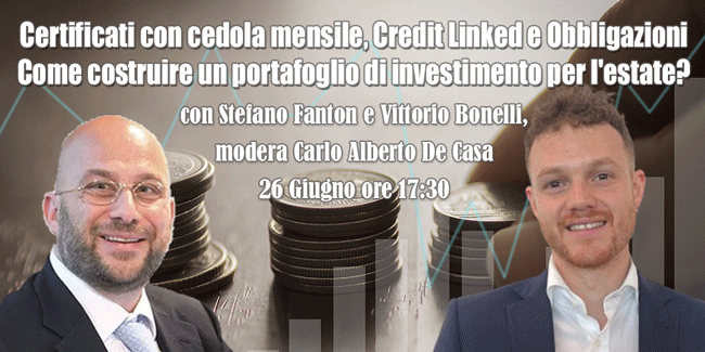 Questo webinar rappresenta un'occasione imperdibile per approfondire le conoscenze sui certificates e comprendere come utilizzarli per diversificare il proprio portafoglio di investimenti. Grazie alla presenza di esperti come Stefano Fanton e Vittorio Bonelli, avrai la possibilità di apprendere strategie efficaci e rispondere alle sfide del mercato.